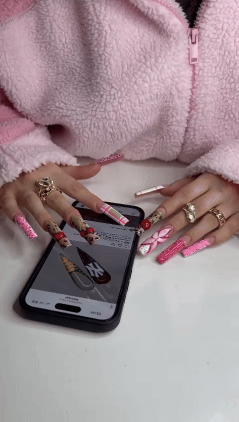 Charms auf den Nägeln sind kleine dekorative Elemente wie Strasssteine, Metallfiguren oder Perlen, die auf den Nagel geklebt werden, um einzigartige Designs zu schaffen. Sie verleihen den Nägeln eine verspielte oder luxuriöse Note und sind ideal, um den Look individuell zu gestalten.